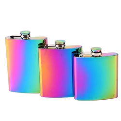 Rainbow Colored Flask for Liquor 6oz 7oz 8oz Leak Proof Stainless Steel Hip Flask Pocket Hip Flask for Whisky Stoup Alcohol