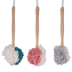 Long Wooden Handle Bath Mesh Cleaning Sponge Shower Body Brush Loofah Exfoliating Body Brush